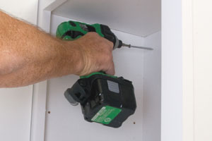 The small 10.8-volt models from Bosch and Hitachi, the 9.6-volt from DeWalt and the 12-volt right angle from Ridgid, can get into some unbelievable tight spots, but all have compact heads just a few inches long. They’re useful for hanging cabinets in tight areas when there’s little internal room in the cabinet. Think of a 12-inch deep cabinet going in a corner where a screw needs to go in at a slight angle to make sure you hit a stud. The fact that no extra pressure is needed to drive screws makes IDs nearly ideal, easing some jobs that can make you crazy with hand screwdrivers, or that can’t be done with a drill/driver. As an example, the Hitachi head is only 5-3/4-inch deep. Add a 3-inch long screw, and you can still easily fit the unit into a standard 12-inch deep cabinet (more like 10-1/2 inches of actual inside depth).