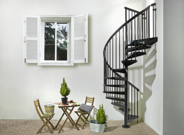 Fontanot Arke` Stairs introduces the SKY030 spiral staircase. The SKY030 is manufactured in varnished steel with a particular treatment (Sendzimir process) that consists of a hot-dipped galvanization and subsequent powder coated varnish. This process insures weather resistance and durability. The final result is a staircase that is highly resistant to atmospheric elements. It can support temperatures ranging from -4°F to 122°F.